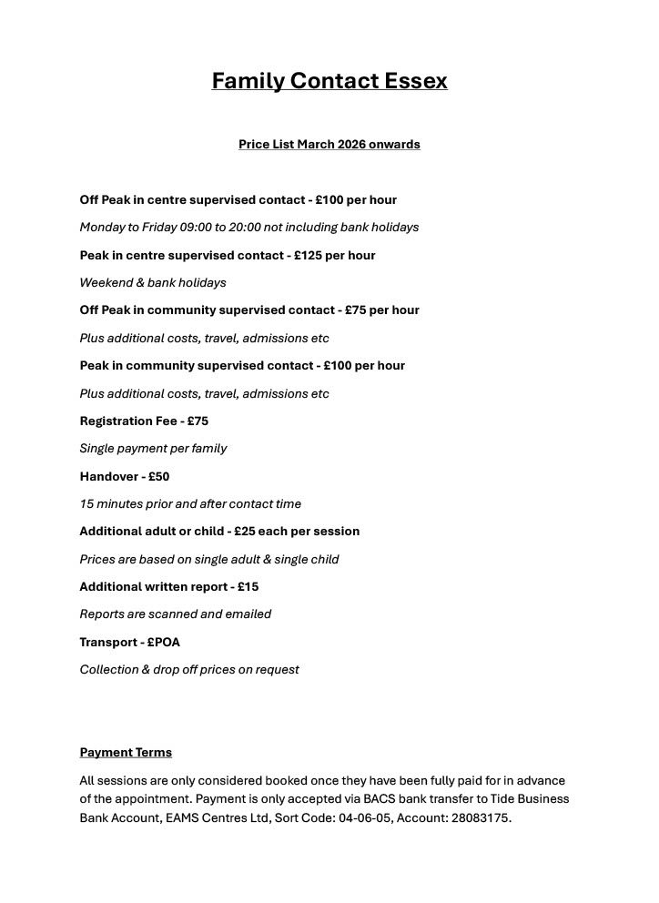 - Supervised Contact - Families are left to spend time together with a member of staff on hand watching on camera making notes.